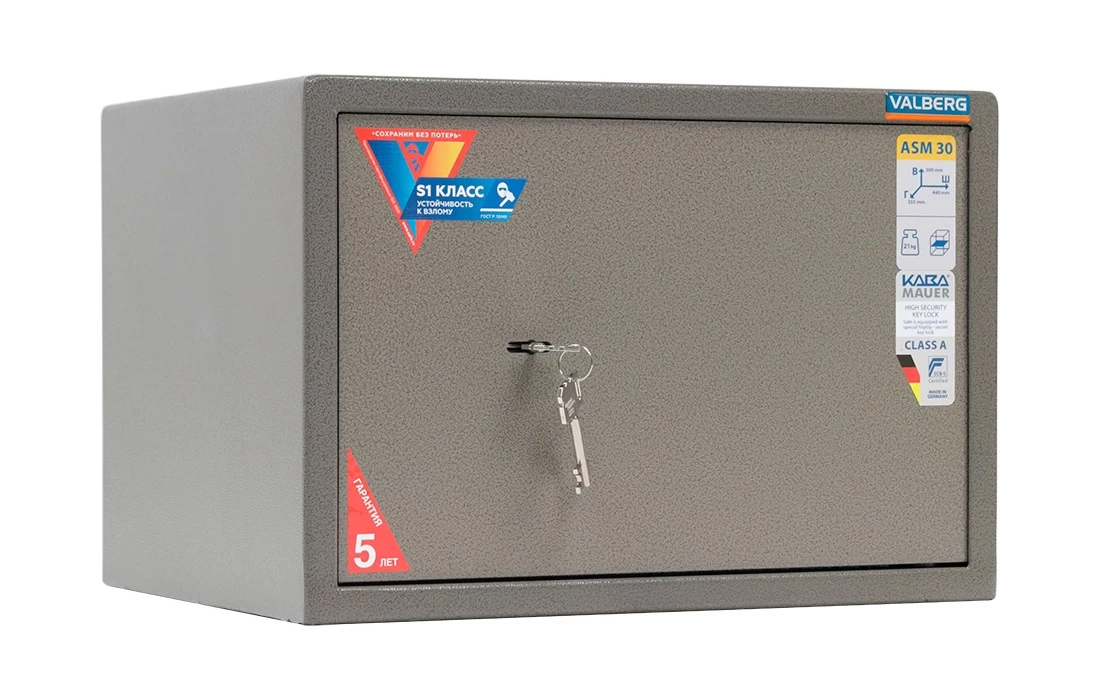 Valberg ASM-30 обладает сертификатом качества, удостоверяющим взломостойкость начального класса S1 в соответствии со стандартом ГОСТ Р 55148-2012.